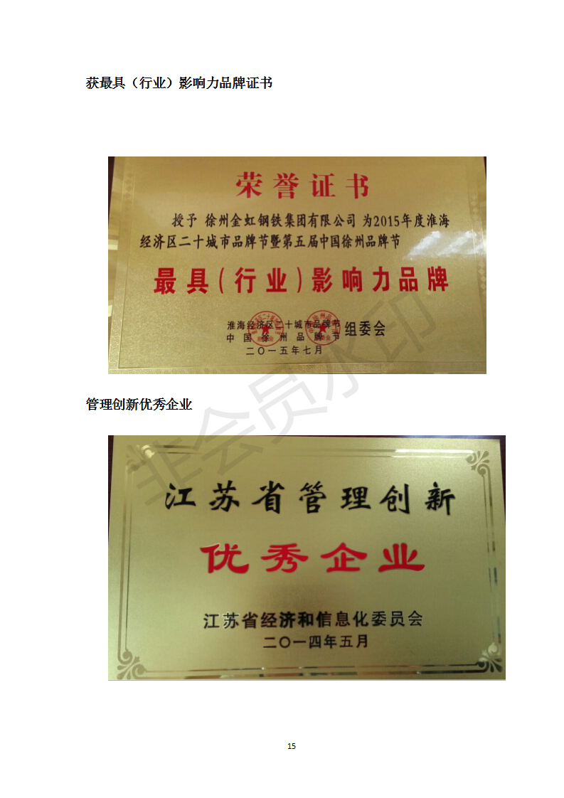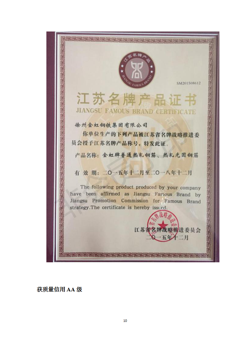 公示:徐州金虹鋼鐵集團有限公司質量信用報告